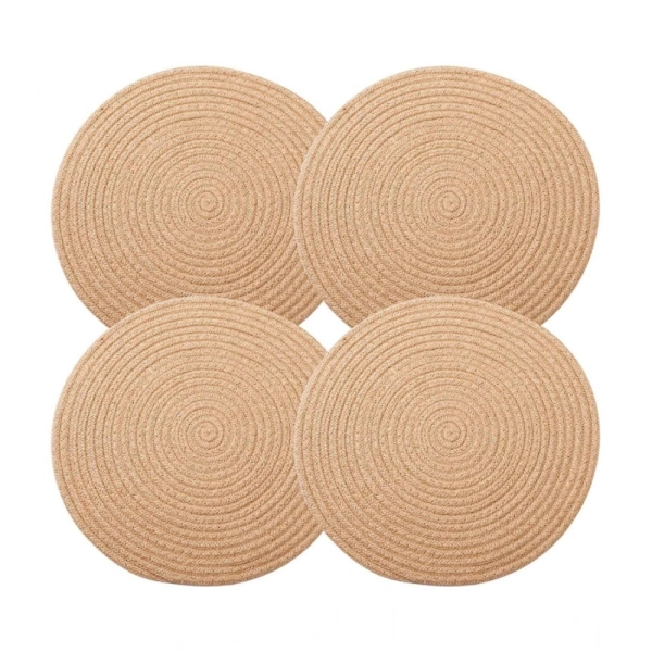 Cotton Dining Table Round Placemat Mats Set of 4 (Beige)