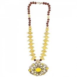 shopnav's Women's Designer Yellow and Golden Beads Necklace (Color: Yellow)