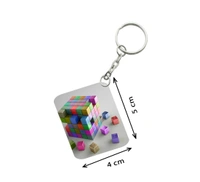 Pack Of 3_ 3D Cubes One Side Printed Rectangle Designer Keychain (Multi Color)