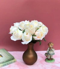Artificial Rose Flowers Bunch Bouquet Of 13 Roses For Home Decoration (Color: Cream, Material: Silk Polyester)