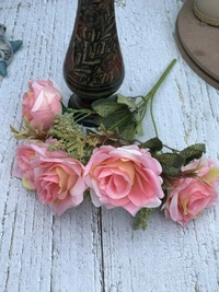 Artificial Flowers Bunch Bouquet Of 5 Vintage Garden Roses For Home Decoration (Peach Pink, Material:Silk, Polyester)