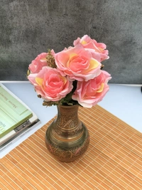 Artificial Flowers Bunch Bouquet Of 5 Vintage Garden Roses For Home Decoration (Peach Pink, Material:Silk, Polyester) adds charm and comfort to your home.
