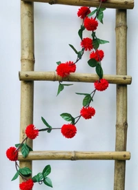 Artificial Red Chrysanthemum Dahlia Flower Vine Creeper With Big Green Leaves For Home Decoraton (Color: Red, Material: Silk Polyester) adds charm and comf.