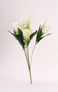 Artificial Flowers Bunch Bouquet Of Daffodil Tulip Flowers For Home Decoration (White, Material:Silk, Polyester)