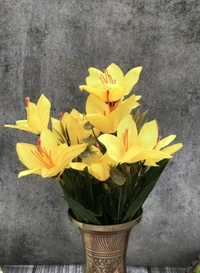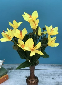 Artificial Flowers Bunch Bouquet Oflily Flowers For Home Decoration (Yellow, Material:Silk, Polyester)