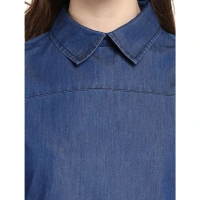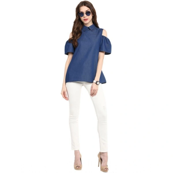Women's Denim Solid Cold Shoulder Regular Top (Blue)