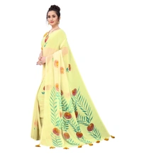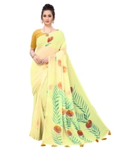Women's Georgette Floral Hand Printed Sarees (Yellow, 5-6 Mtrs)