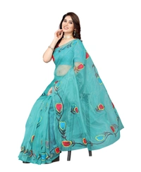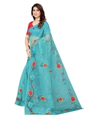 Women's Organza Floral Pattern Sarees (Rama, 5-6 Mtrs)