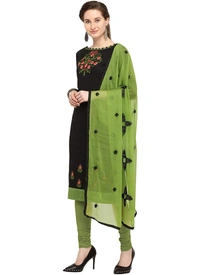 Women's Slub Cotton Unstitched Salwar-Suit Material With Dupatta (Black, 2 Mtr)