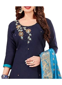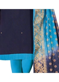 Women's Slub Cotton Unstitched Salwar-Suit Material With Dupatta (Navy Blue, 2 Mtr)