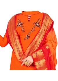 Women's South Slub Cotton Unstitched Salwar-Suit Material With Dupatta (Orange, 2 Mtr)