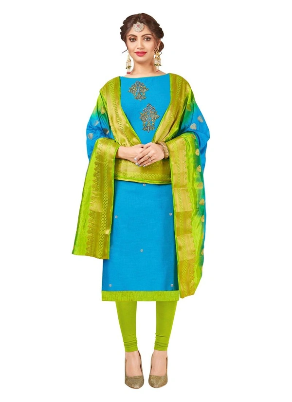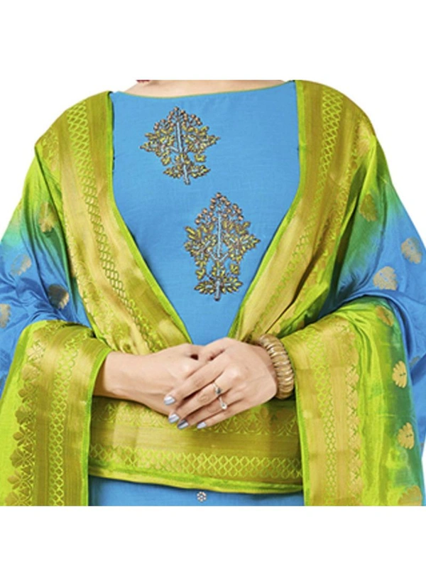 Women's South Slub Cotton Unstitched Salwar-Suit Material With Dupatta (Sky Blue, 2 Mtr)